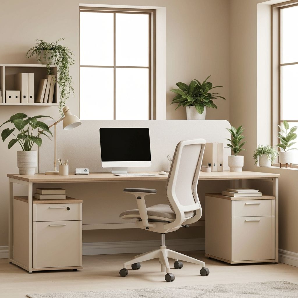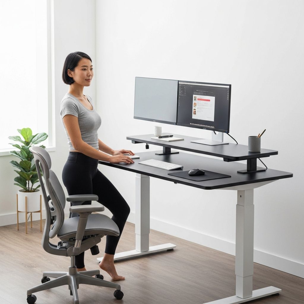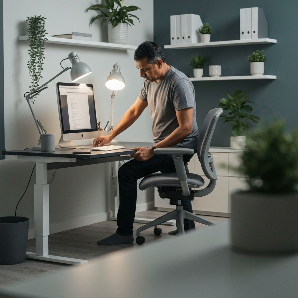 Hover over the workspace to discover how each ergonomic tool improves your posture and reduces strain.