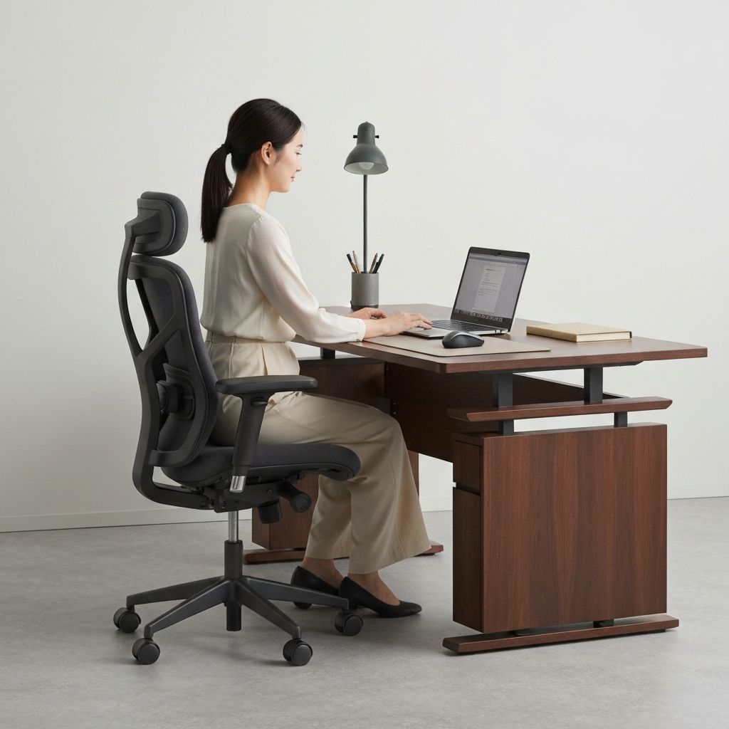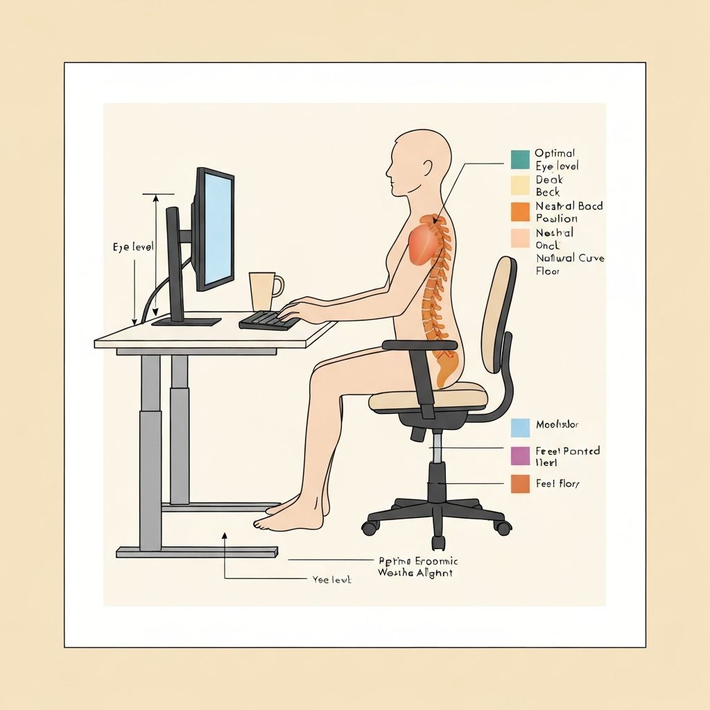 Hover over the workspace to discover how each ergonomic tool improves your posture and reduces strain.